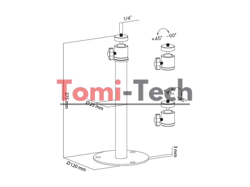 Pohyblivý držiak na stenu/strop ponúka flexibilnú montáž s maximálnym zaťažením až 2,5 kg. S uhlami natočenia od +90° do -45° a horizontálnym nastavením od +45° do -45° poskytuje dokonalé nastavenie pozorovacieho uhla. Robustná oceľová konštrukcia v elegantnom matnom čiernom prevedení a nastaviteľná vzdialenosť od steny zaisťujú stabilitu a estetiku. Sada navyše obsahuje montážne skrutky a hmoždinky pre rýchlu a bezpečnú inštaláciu.