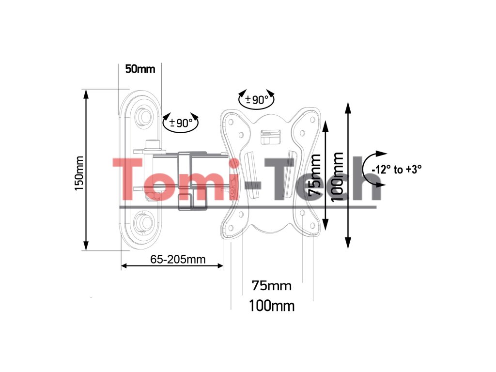 - Nastaviteľná vzdialenosť od steny: 65-205 mm