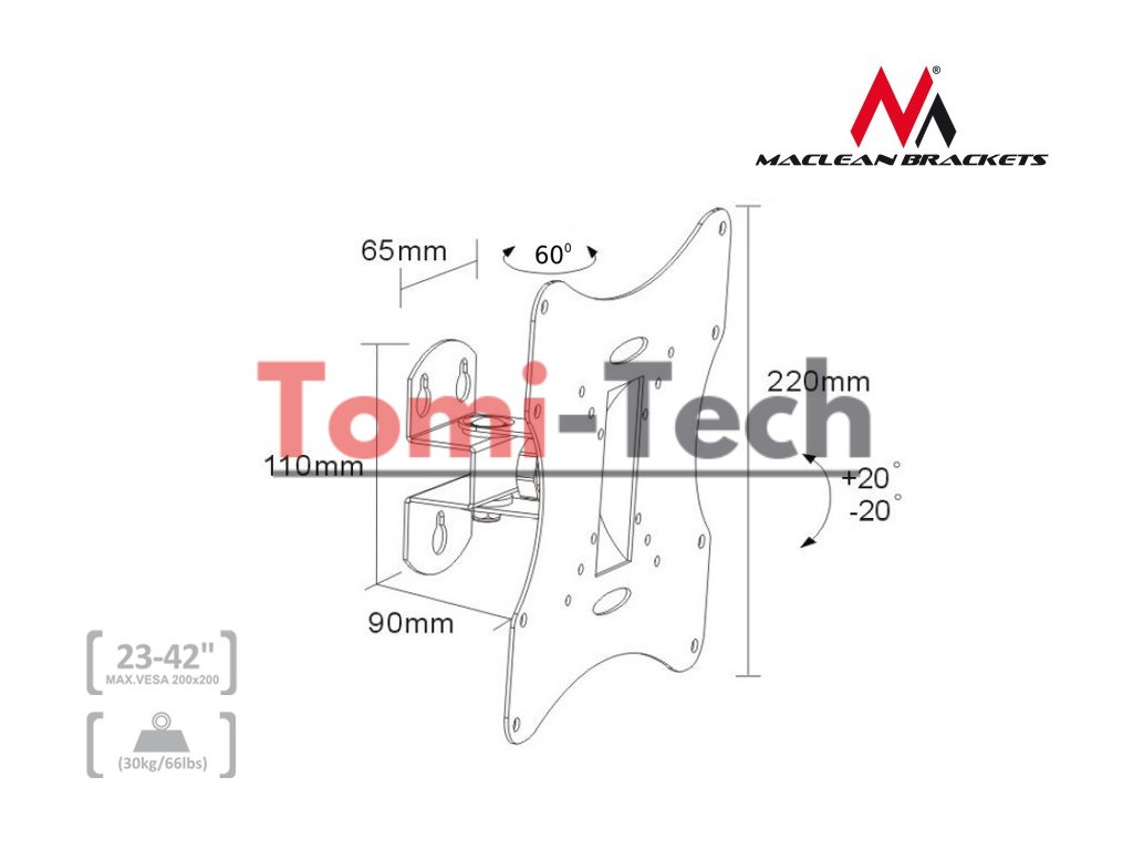 Sada obsahuje- Držiak na TV 23-50" Maclean MC-501A B čierny