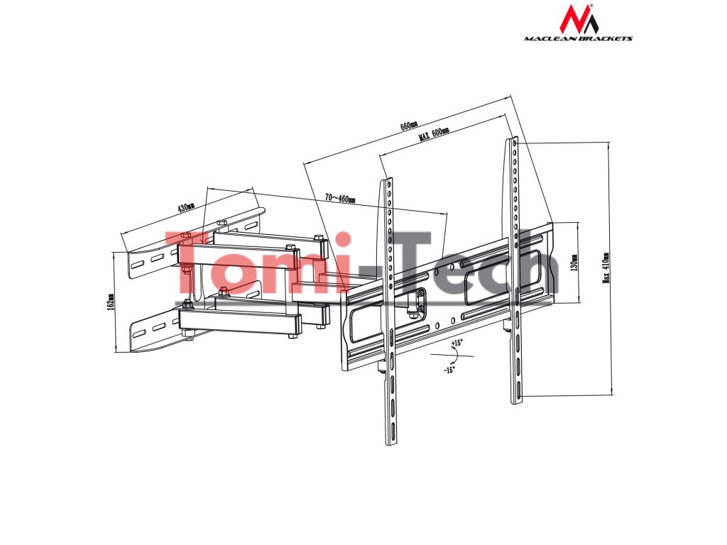 Sada obsahuje- Univerzálny držiak Maclean MC-762 na TV alebo monitor 37-80" 30 kg