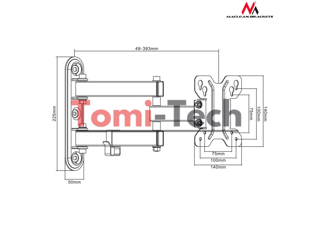 - Nastaviteľná vzdialenosť od steny: 49-393 mm
