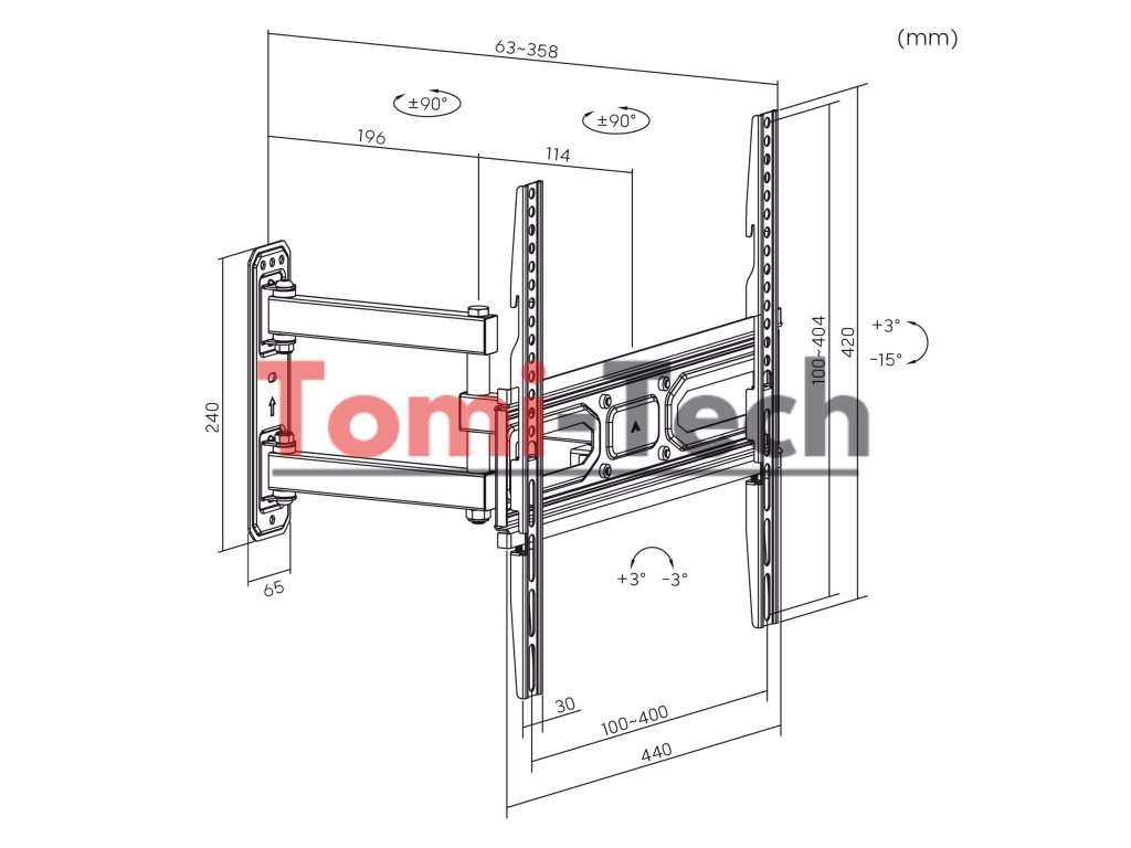 Sada obsahuje - Držiak na TV Maclean MC-647N - Montážne príslušenstvo - Montážny návod - Balenie výrobcu - Vlastnosti - Maximálne zaťaženie: do 35 kg - Vyrovnanie televízora po inštalácii +3/-3° - Nastavenie sklonu od +3 do -15 stupňov - Minimálna/maximálna horizontálna vzdialenosť: 100/400 mm - Minimálna/maximálna vertikálna vzdialenosť: 100/400 mm - Nastaviteľná vzdialenosť od steny: 63 mm až 358 mm - Vhodné pre zakrivené televízory - Pevná kovová konštrukcia - Práškový náter (čierna farba)