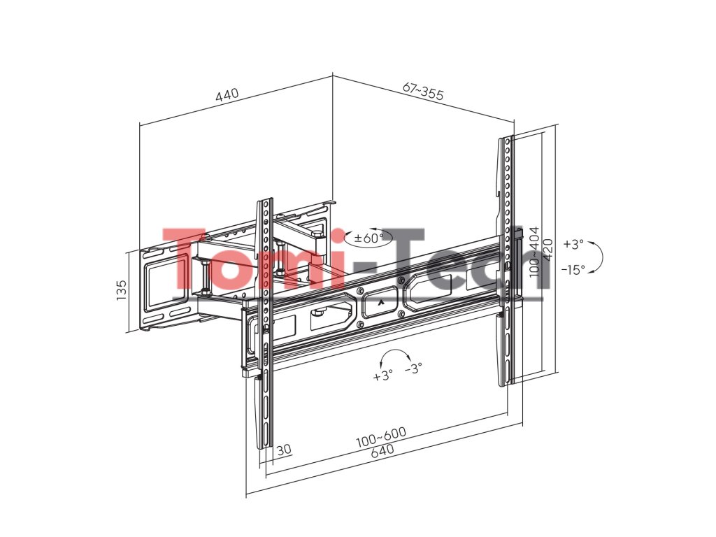 - Možnosť vyrovnania televízora po inštalácii +3/-3°