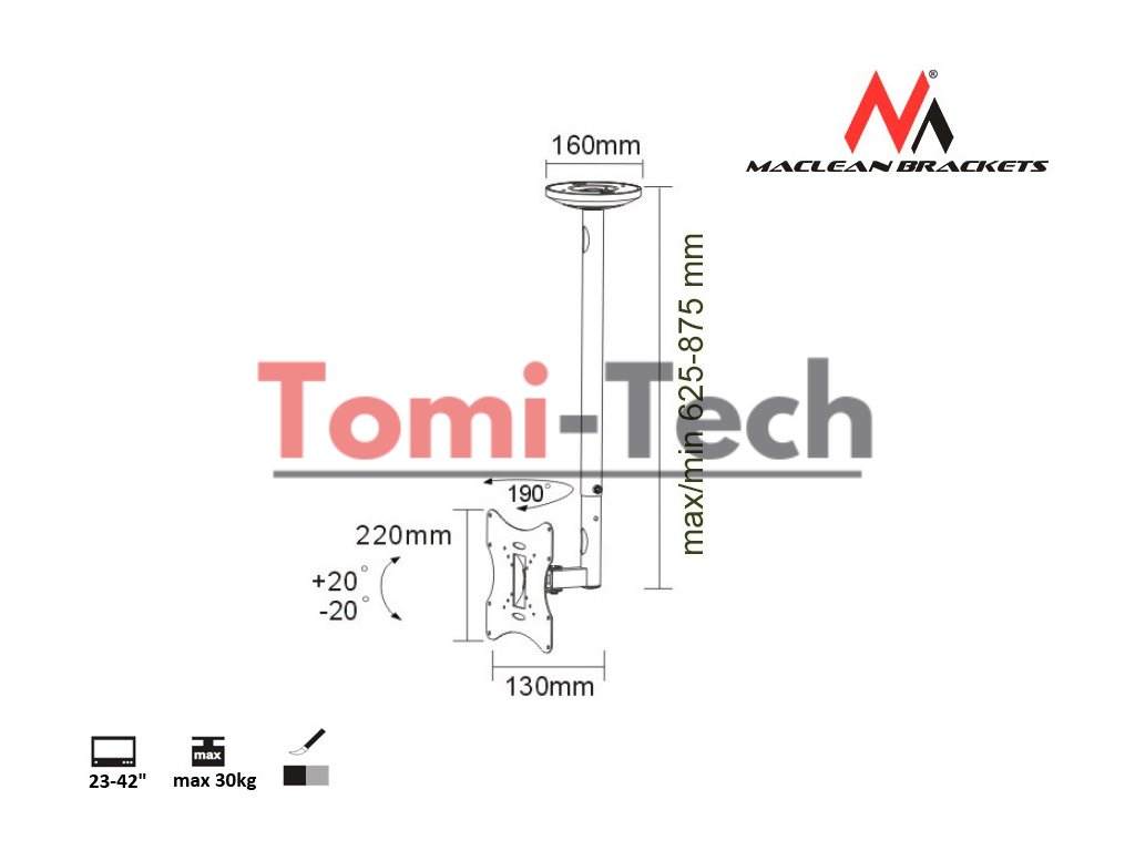 Stropný TV držiak Maclean, 23-42", 50~85cm, 30kg, strieborný, MC-504A S