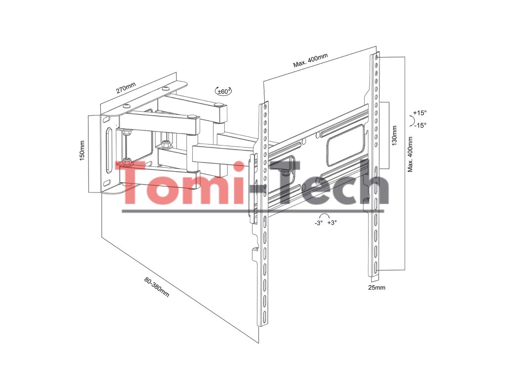 Držiak na TV Maclean, max. VESA 400x400, 32-75", 50 kg, vertikálne a horizontálne nastavenie uhla, profil 80-380 mm, čierny, MC-788