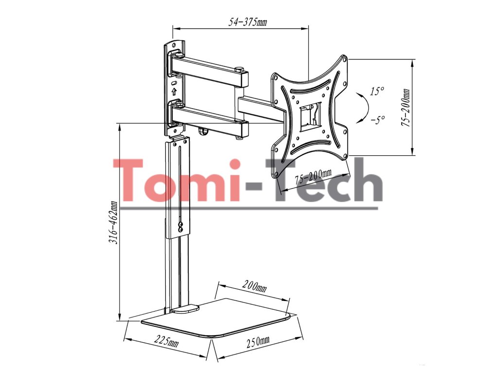 - Nastaviteľná vzdialenosť medzi televízorom a stenou: od 54 do 375 mm