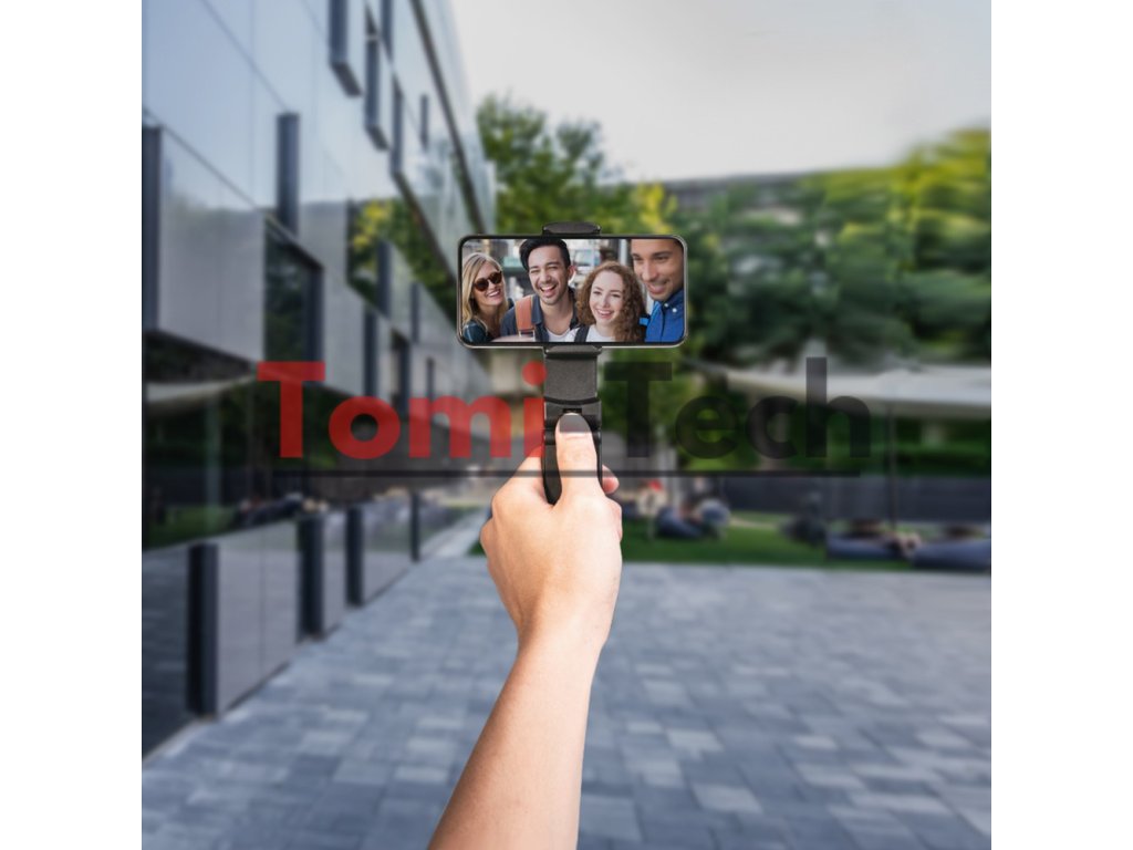 Vďaka kompaktným rozmerom držiaka si ho môžete vziať vždy so sebou. Držiak sa ľahko zmestí do vrecka nohavíc alebo kabelky. Držiak na mobilný telefón nie je potrebné montovať, pretože sa dá použiť aj ako stojan. Perfektne sa hodí na poličku alebo stôl.