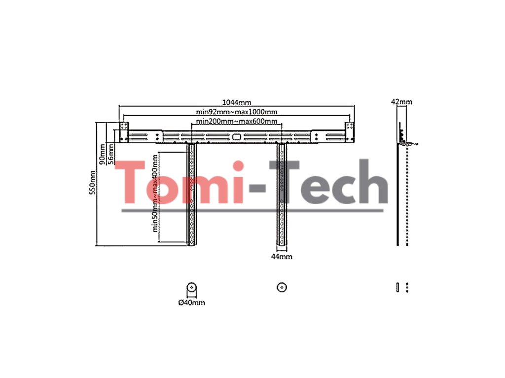 Nastavenie šírky umožňuje montáž reproduktorov s rozstupom otvorov medzi 92 mm a 1000 mm.