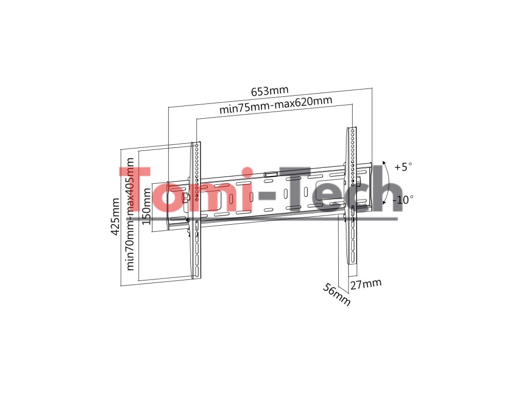 Vyrobený z masívnej ocele a práškovo lakovaný v elegantnej čiernej farbe, ponúka maximálnu nosnosť až 50 kg, čím poskytuje bezpečnú oporu pre väčšie televízory. Vďaka svojej odolnej konštrukcii a modernému dizajnu sa stáva nielen funkčným riešením, ale aj elegantným doplnkom v každom interiéri. Vstavaná vodováha uľahčuje presnú inštaláciu a vzdialenosť od steny 56 mm zaručuje úhľadné a estetické uchytenie.