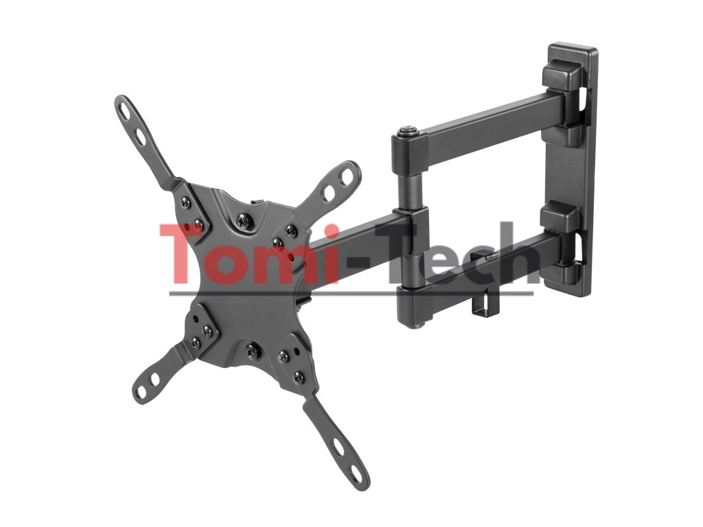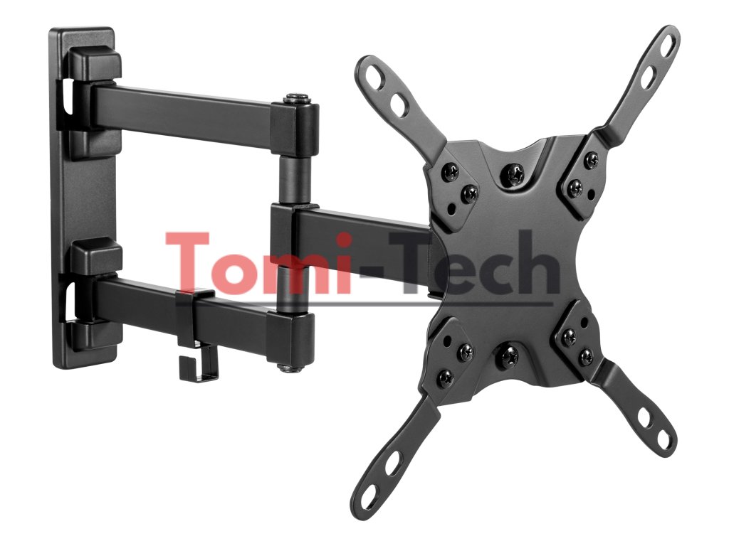 Držiak pre televízory s rozmermi13??-32?? Je možné ho nastaviť v uhloch až +90°/-90° horizontálne a +5°/-12° vertikálne. Navyše si môžete usporiadať káble, aby boli udržiavané v poriadku a váš byt vyzeral esteticky a elegantne.