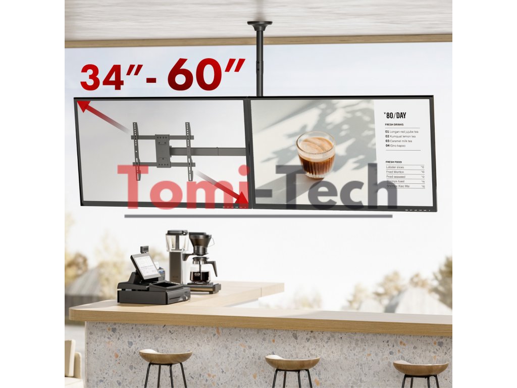 Stropný držiak pre dva TV Maclean, max. nosnosť 2x40kg, 34-60", max VESA 600x400, MC-111 B