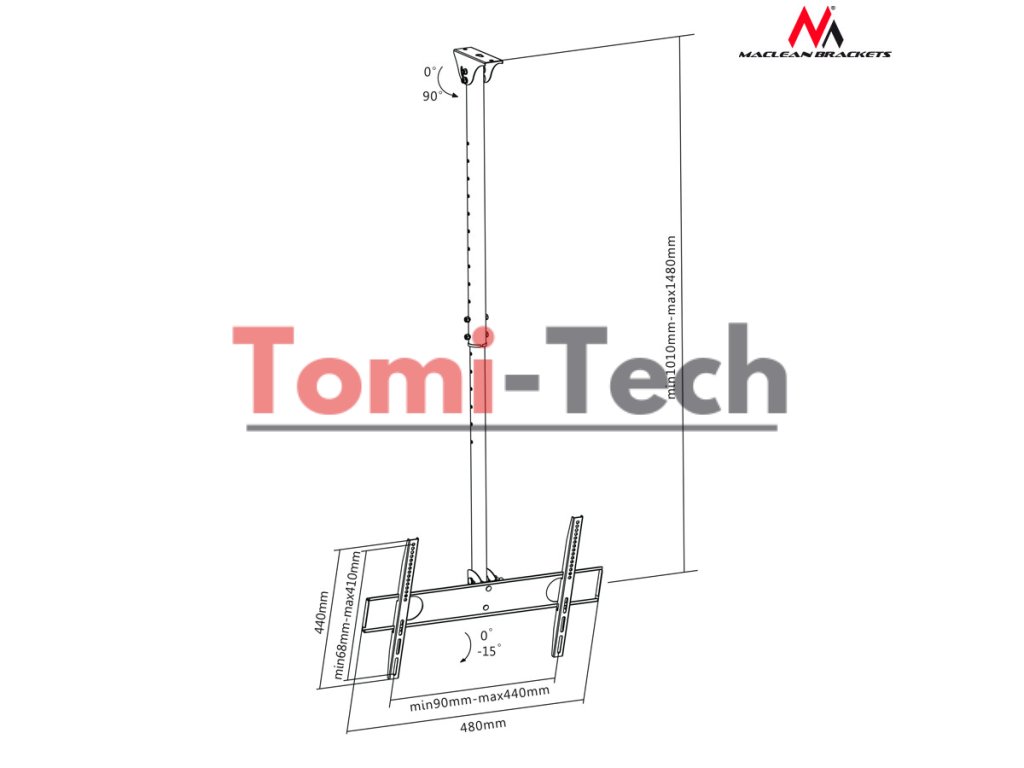 Stropný držiak Maclean na TV, max. VESA 400x400, 32-65", 50 kg, MC-631