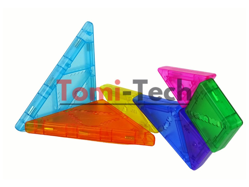 Sada pozostáva zo 7 magnetických blokov v rôznych tvaroch a žiarivých farbách - piatich trojuholníkov, jedného štvorca a jedného rovnobežníka. Deti môžu voľne usporiadať dieliky, čím si rozvíjajú koordináciu ruka-oko, sústredenie a priestorové vnímanie.