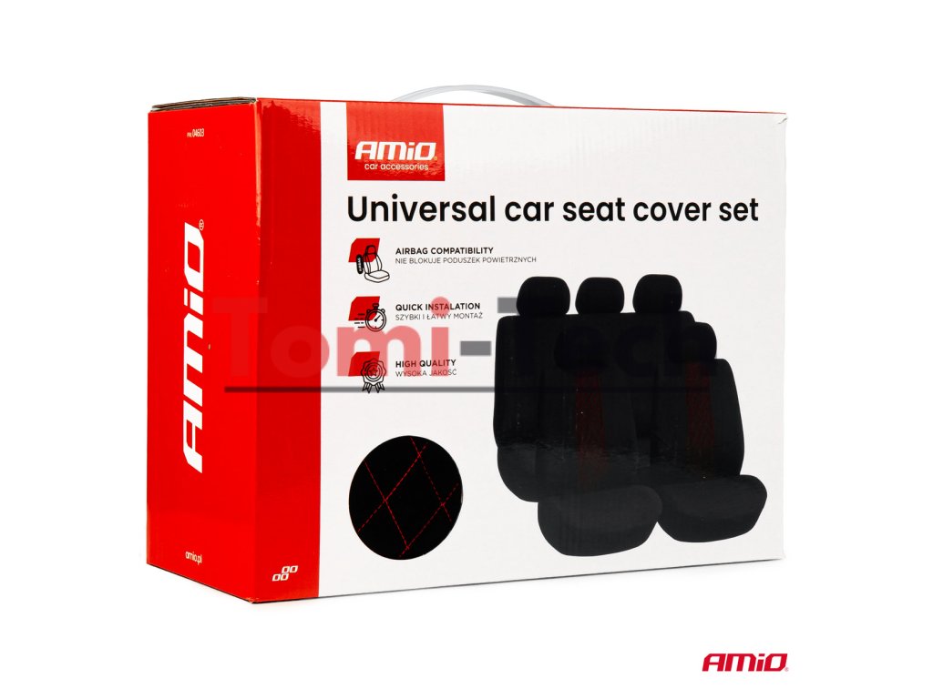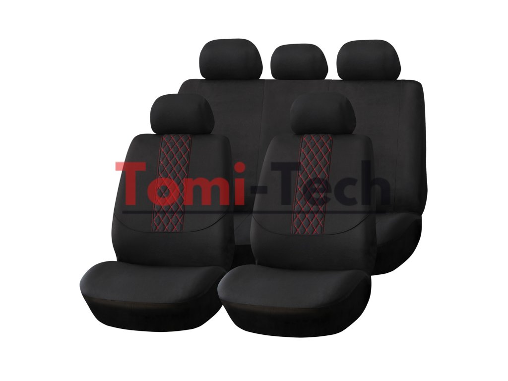 Táto 9-dielna sada obsahuje poťahy na dve predné sedadlá, delené zadné sedadlo a kompletnú sadu opierok hlavy. Univerzálna sada pre väčšinu modelov osobných automobilov.
