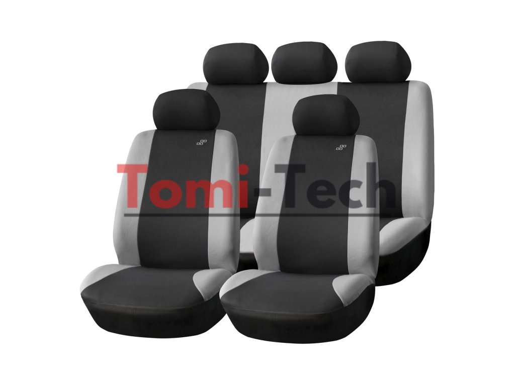 Táto 9-dielna sada obsahuje poťahy na dve predné sedadlá, delené zadné sedadlo a kompletnú sadu opierok hlavy. Univerzálna sada pre väčšinu modelov osobných automobilov.