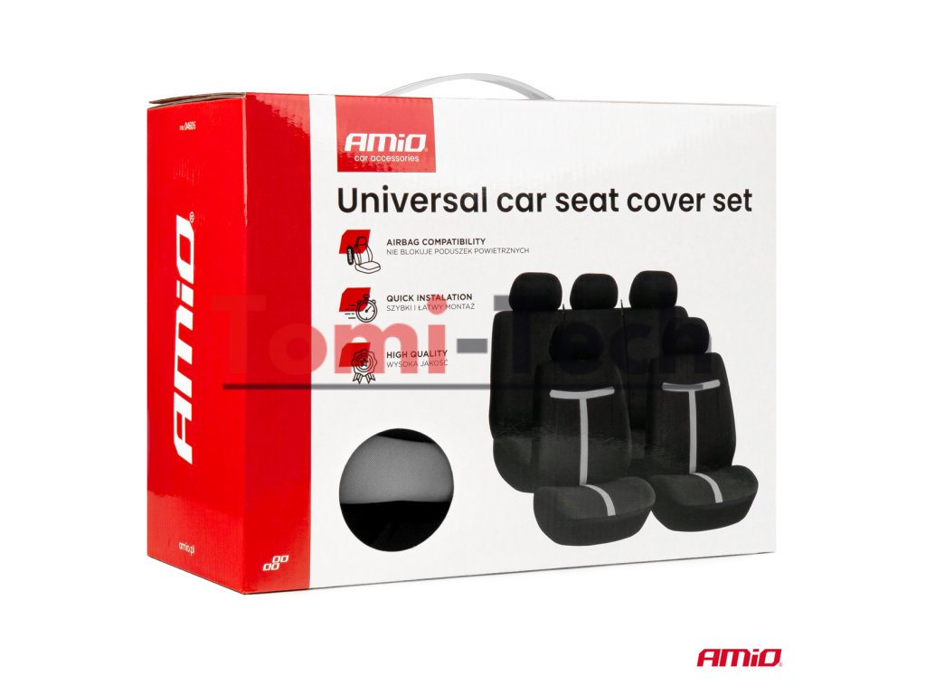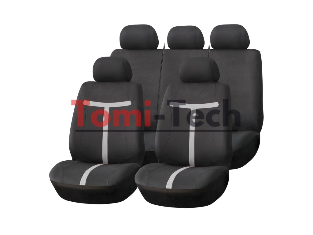 Táto 9-dielna sada obsahuje poťahy na dve predné sedadlá, delené zadné sedadlo a kompletnú sadu opierok hlavy. Univerzálna sada pre väčšinu modelov osobných automobilov.