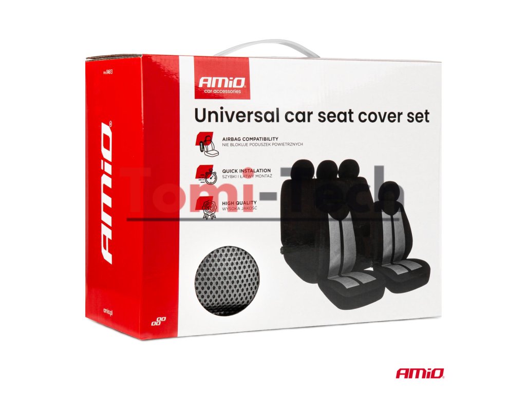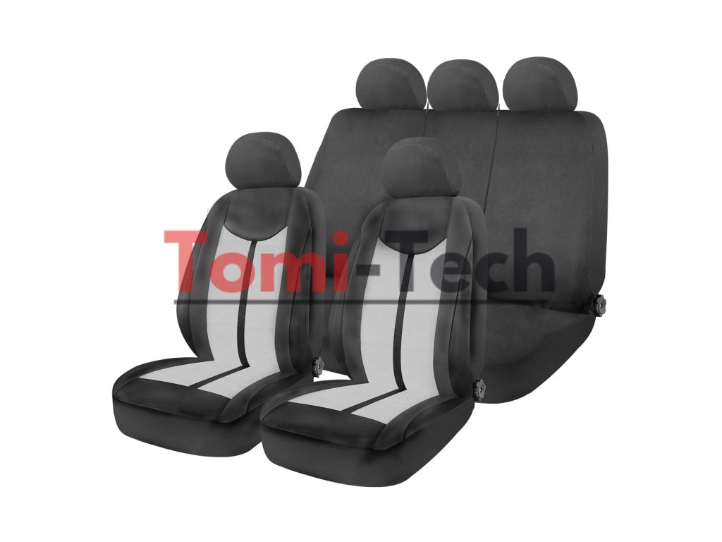 Táto 9-dielna sada obsahuje poťahy na dve predné sedadlá, delené zadné sedadlo a kompletnú sadu opierok hlavy. Univerzálna sada pre väčšinu modelov osobných automobilov.