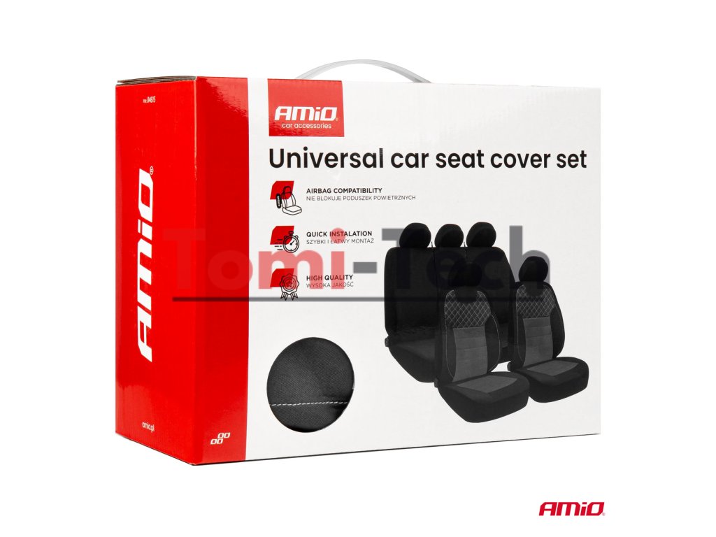 Táto 9-dielna sada obsahuje poťahy na dve predné sedadlá, delené zadné sedadlo a kompletnú sadu opierok hlavy. Univerzálna sada pre väčšinu modelov osobných automobilov.