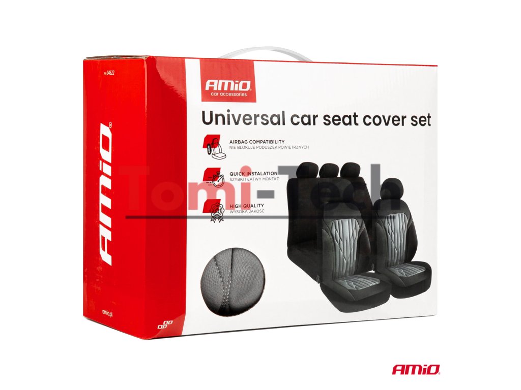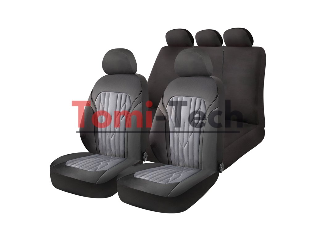 Táto 9-dielna sada obsahuje poťahy na dve predné sedadlá, delené zadné sedadlo a kompletnú sadu opierok hlavy. Univerzálna sada pre väčšinu modelov osobných automobilov.