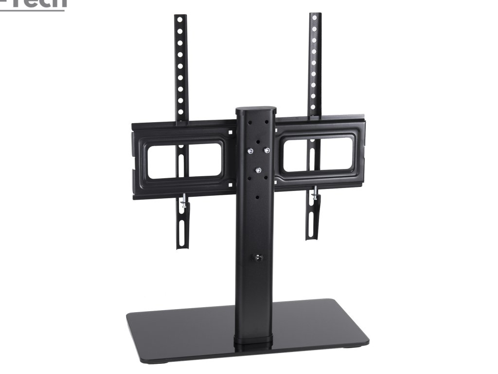 Elegantná základňa z tvrdeného skla zaisťuje stabilitu a odolnosť televízorov a monitorov s hmotnosťou do 40 kg. Základňa je navyše vybavená protišmykovými podložkami, ktoré chránia dosku stola pred poškriabaním.
