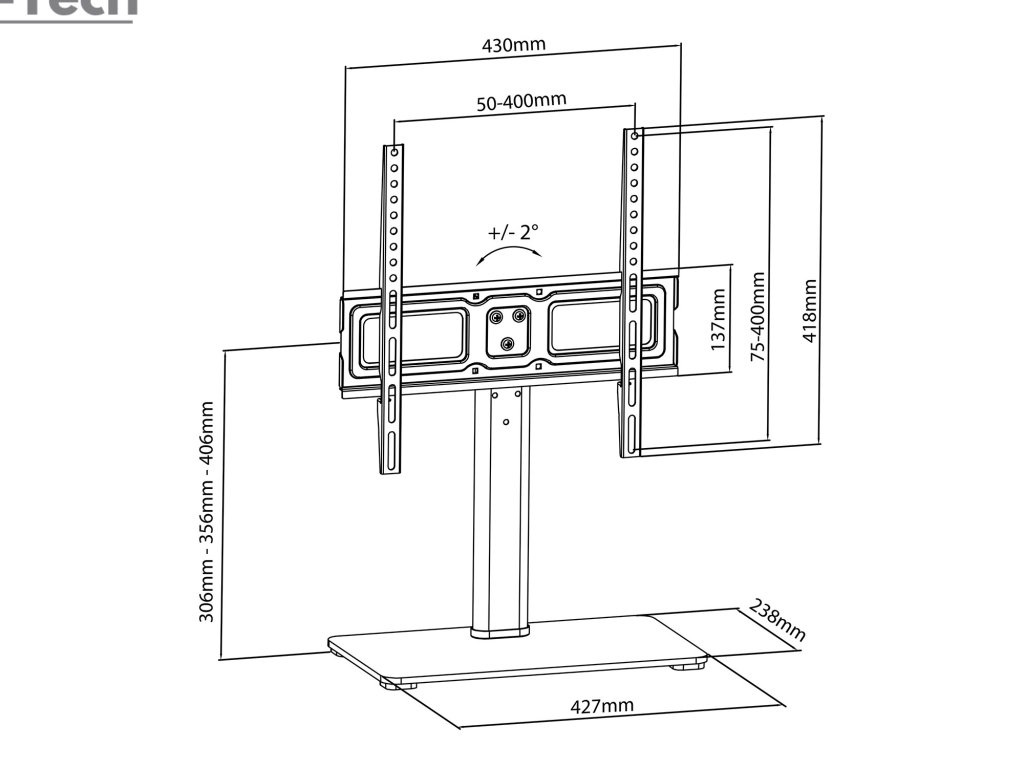 - VESA: 75x75, 100x100, 200x100, 200x200, 400x200, 300x300, 400x400 mm