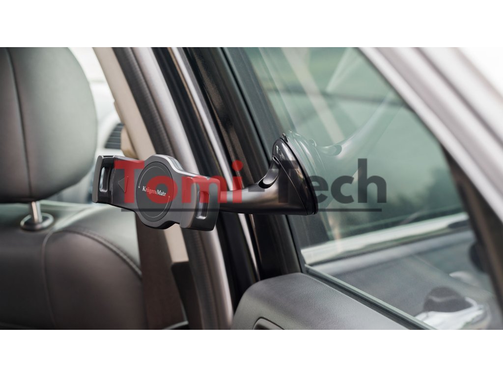 Montáž zariadenia je veľmi jednoduchá a intuitívna. KM1369 je držiak do auta na tablet na čelné sklo. Silná prísavka na ramene tlmí nárazy a zvyšuje stabilitu zariadenia počas jazdy. Dôležité je, že držiak sa dá otočiť o 360°, čo vám umožní nastaviť tablet do pohodlnej polohy na sledovanie.