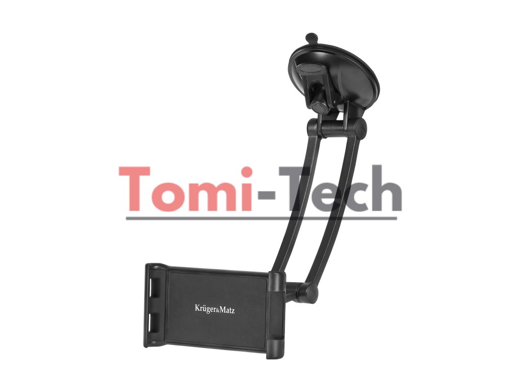 Držiak Kruger&Matz je vybavený pevnou prísavkou, ktorá zaisťuje bezpečné pripevnenie k čelnému sklu alebo inému hladkému povrchu povrch. Vďaka tomu je tablet stabilný aj pri jazde na nerovnom povrchu.