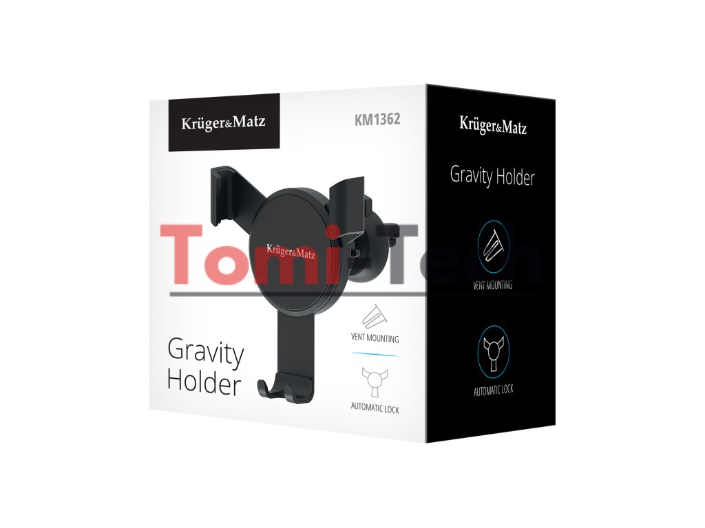 Držiak Gravity Kruger&Matz na telefón pripevnený k vetraciemu otvoru je mimoriadne ľahko inštalovateľné a praktické príslušenstvo, ktoré sa vám určite bude hodiť do auta, najmä ak sa vydávate na neznámu trasu a neustále používate navigáciu. Držiak do auta s gravitáciou bol navrhnutý tak, aby ste nemuseli manuálne stláčať bočné ramená. Funkcia automatického uzamknutia znamená, že stačí vložiť telefón do držiaka a ramená sa automaticky zatvoria.
