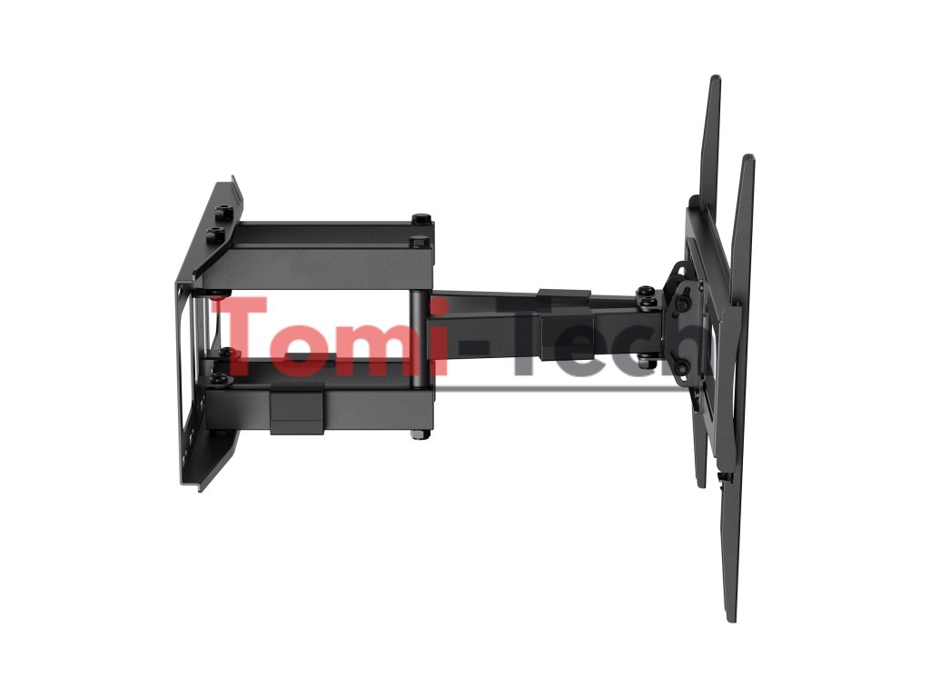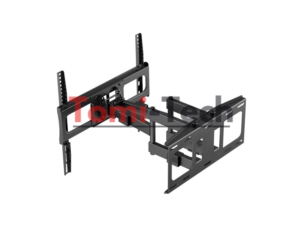 Držiak podporuje širokú škálu štandardov VESA a je vhodný pre televízory s hmotnosťou do 60 kg, čím zaisťuje stabilitu. Nastaviteľná vzdialenosť od steny od 100 do 500 mm a vstavaný systém na správu káblov umožňujú estetické a funkčné nastavenie. Sada obsahuje montážne skrutky pre rýchlu a jednoduchú inštaláciu.