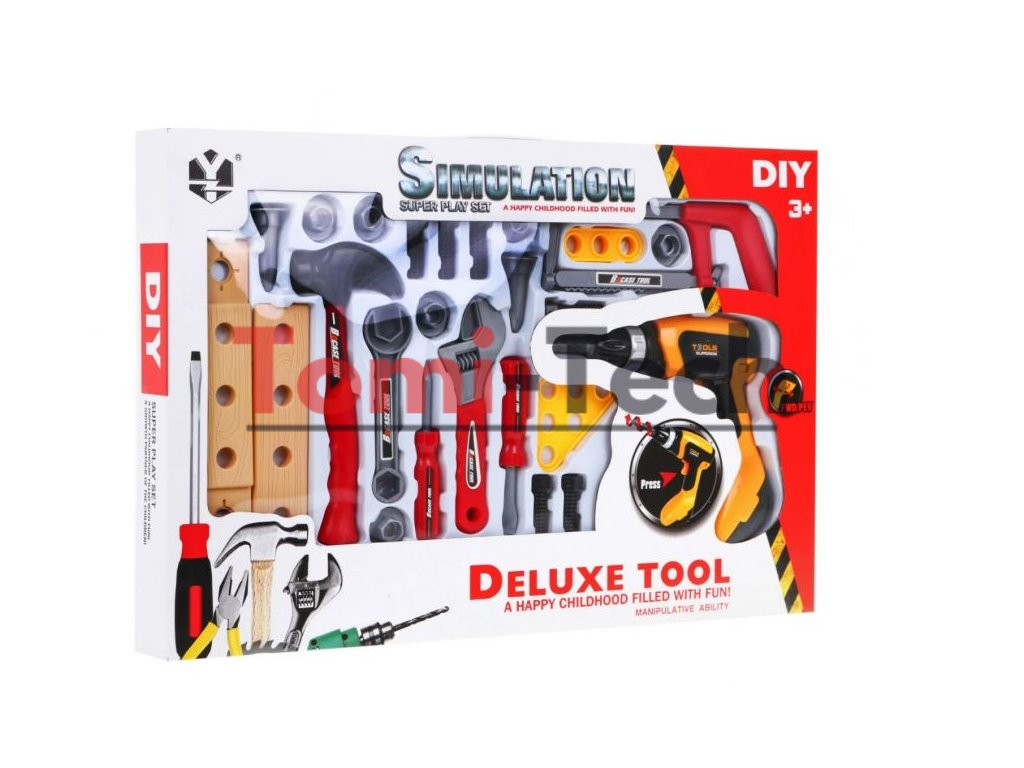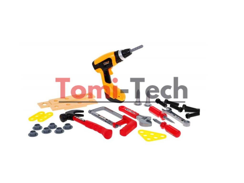 Rozmery a obsah balenia:Vŕtačka: 19 cm x 20 cm x 5 cm,2x kľúč: 15 cm x 4 cm,Kladivo: 22 cm x 9 cm,Pílka: 2,5 cm x 9 cm,2x skrutkovač ,5x komponenty,2x kolíky,6x skrutky,6x podložka,Sada samolepiek