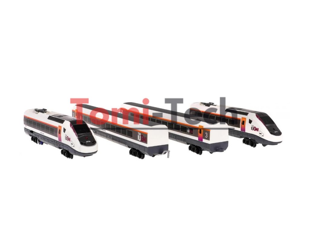 Vlak pozostáva z dvoch lokomotív a dvoch vozňov. Jedna z lokomotív je napájaná 2 x AA 1,5V batériami, batérie nie sú súčasťou balenia. Počas jazdy počuť charakteristické zvuky vlaku a na čele rušňa sa rozsvieti červená LED dióda. Sada obsahuje dráhy, ktoré je možné usporiadať v ľubovoľnej kombinácii. Vláčik aj koľajnice sú vyrobené z najkvalitnejšieho plastu, ktorý zabezpečuje dlhodobú odolnosť a odolnosť jednotlivých prvkov súpravy.
