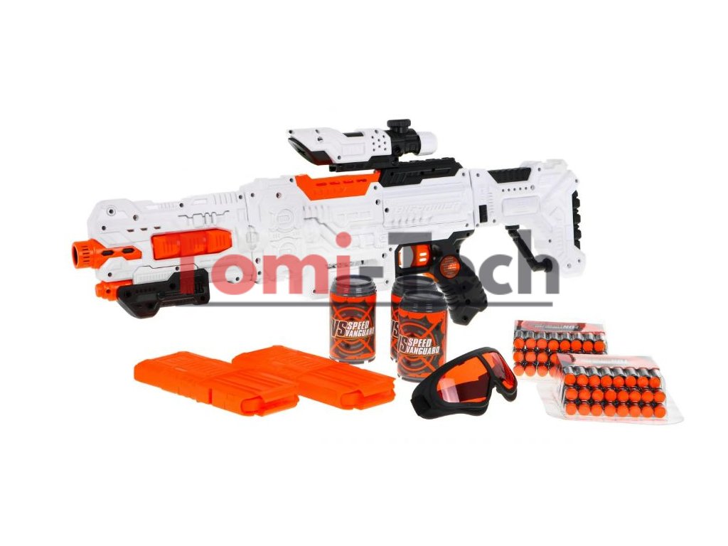 Obsah balenia:pištoľ,2 zásobníky,48 penových nábojov,3 plechovky,ochranné okuliare