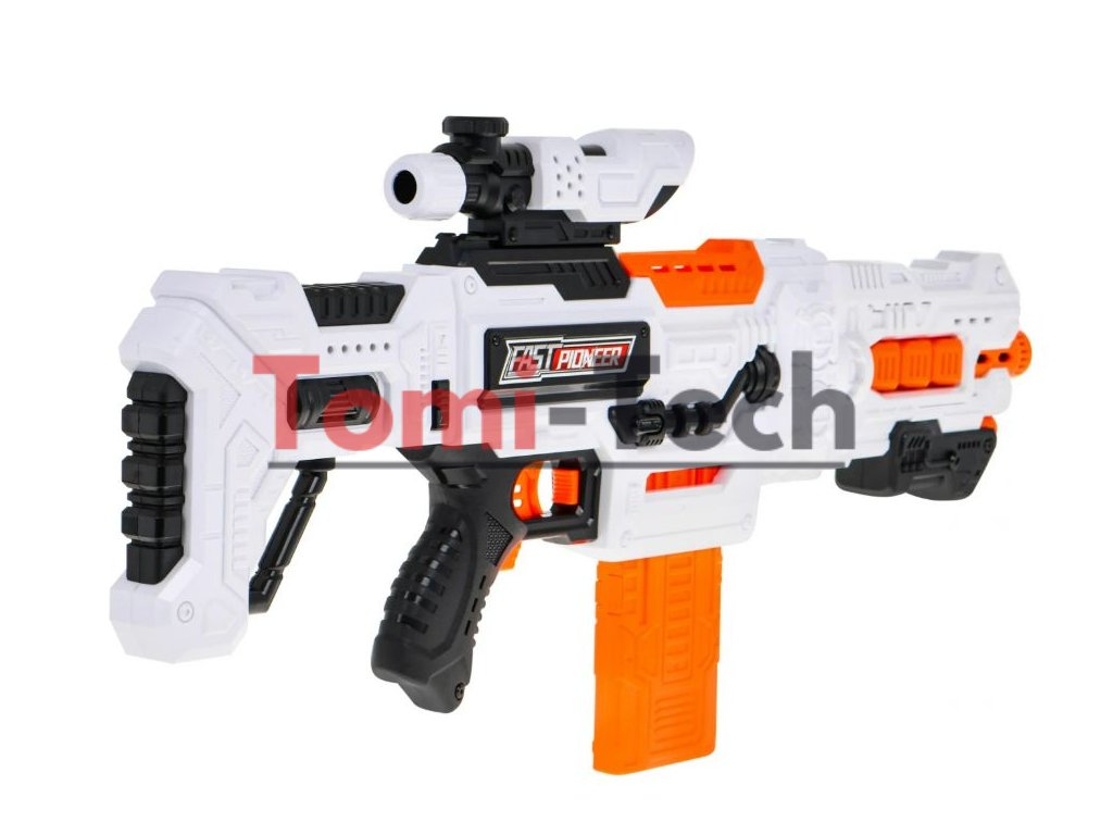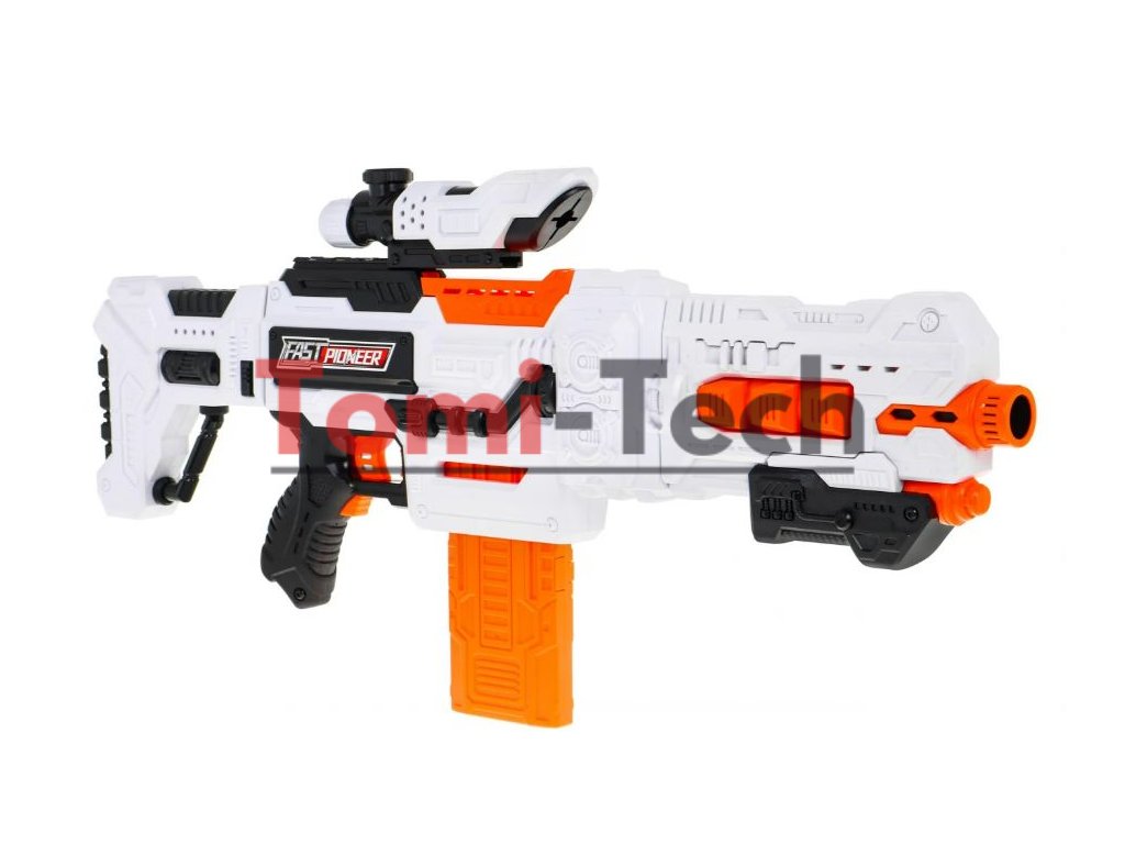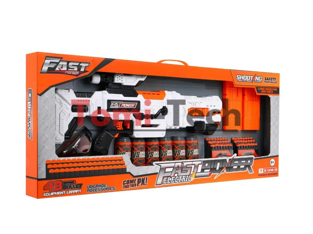Detská pištoľ Fast Pioneer je určená pre deti od 8 rokov. Pištoľ poskytne veľa zábavy každému malému vojenskému fanúšikovi. Výhodou tejto pištole je rýchlosť streľby, spoľahlivosť a funkčnosť. Hračka dieťa naučí sústrediť sa na cieľ, trénuje koordináciu oka a ruky, a taktiež zaistí skvelú zábavu. Z pištole strieľate penové pištole, ktoré sú mäkké a bezpečné. Kapacita zásobníka je 10 nábojov. Hračka je napájaná šiestimi 1,5 V AA batériami, ktoré nie sú súčasťou balenia.