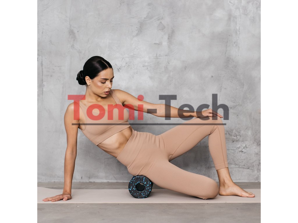 Masážny valček, hladký penový valček 14x33cm, čierno-modrý, materiál EPP, REBEL ACTIVE
