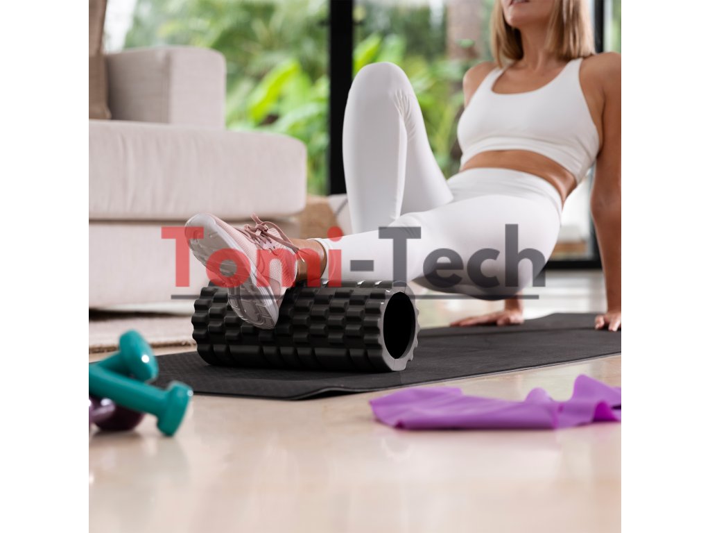 Masážny valček s výstupkami 14x33cm, čierny, materiál EVA, REBEL ACTIVE