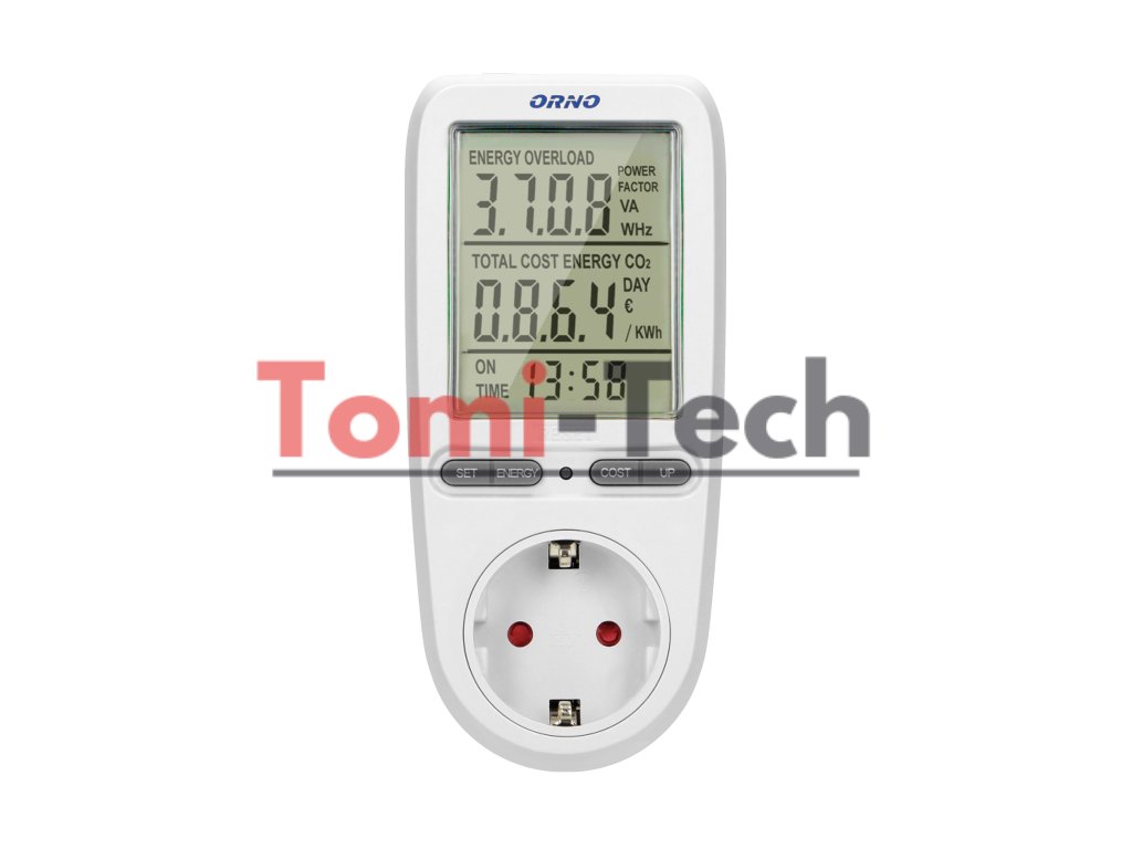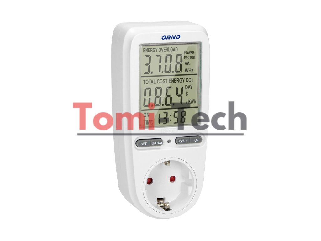 Wattmeter nám umožňuje kontrolovať spotrebu elektriny a vypočítať náklady na energiu pripojených zariadení. Veľký LCD displej tiež zobrazuje: sieťové napätie, prúd obvodu, frekvenciu prúdu, ÚČINNÍK, pripojenú záťaž, celkovú spotrebu energie v kWh, náklady na spotrebovanú energiu, programovateľnú cenu za kWh, čas merania celkovej spotreby energie od 0 sekúnd do 9999 dní a priemerné emisie CO2 zo spotrebovanej energie. Meranie napätia: 150 V ~ 276 V ~.Dodatočné parametre