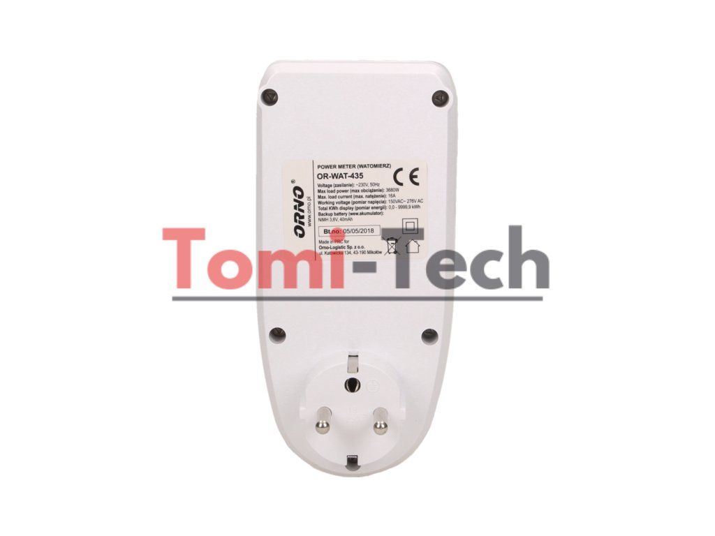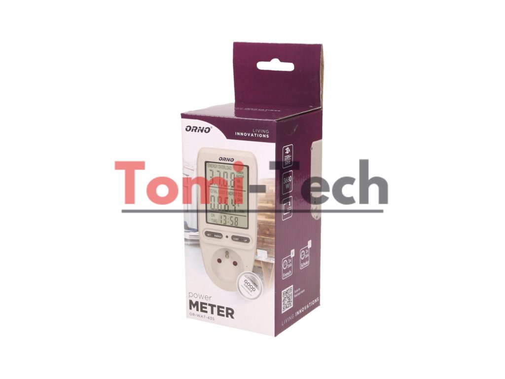 Wattmeter nám umožňuje kontrolovať spotrebu elektriny a vypočítať náklady na energiu pripojených zariadení. Veľký LCD displej tiež zobrazuje: sieťové napätie, prúd obvodu, frekvenciu prúdu, ÚČINNÍK, pripojenú záťaž, celkovú spotrebu energie v kWh, náklady na spotrebovanú energiu, programovateľnú cenu za kWh, čas merania celkovej spotreby energie od 0 sekúnd do 9999 dní a priemerné emisie CO2 zo spotrebovanej energie. Meranie napätia: 150 V ~ 276 V ~.Dodatočné parametre