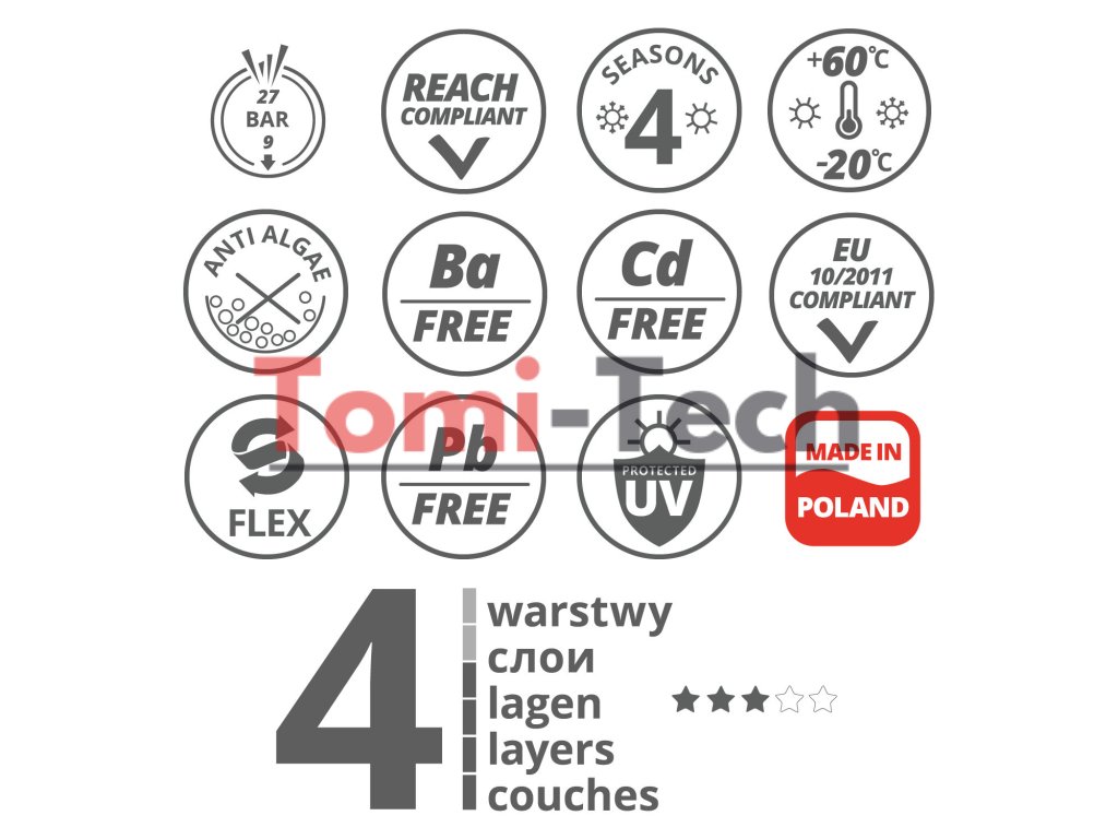 Vlastnosti- 4-vrstvová - koextrudovaná biela vnútorná vrstva trvalo spojená so žltým jadrom