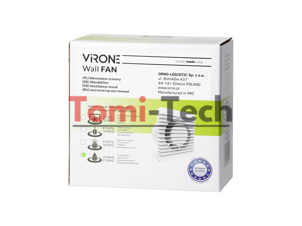100 mm povrchový kúpeľňový ventilátor so senzorom vlhkosti a časovačom