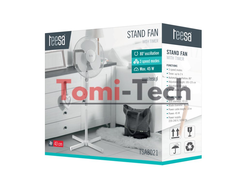 A to všetko vďaka stojanovému ventilátoru Teesa! Výberom jedného z troch režimov rýchlosti si môžete nastaviť teplotu podľa svojich potrieb.