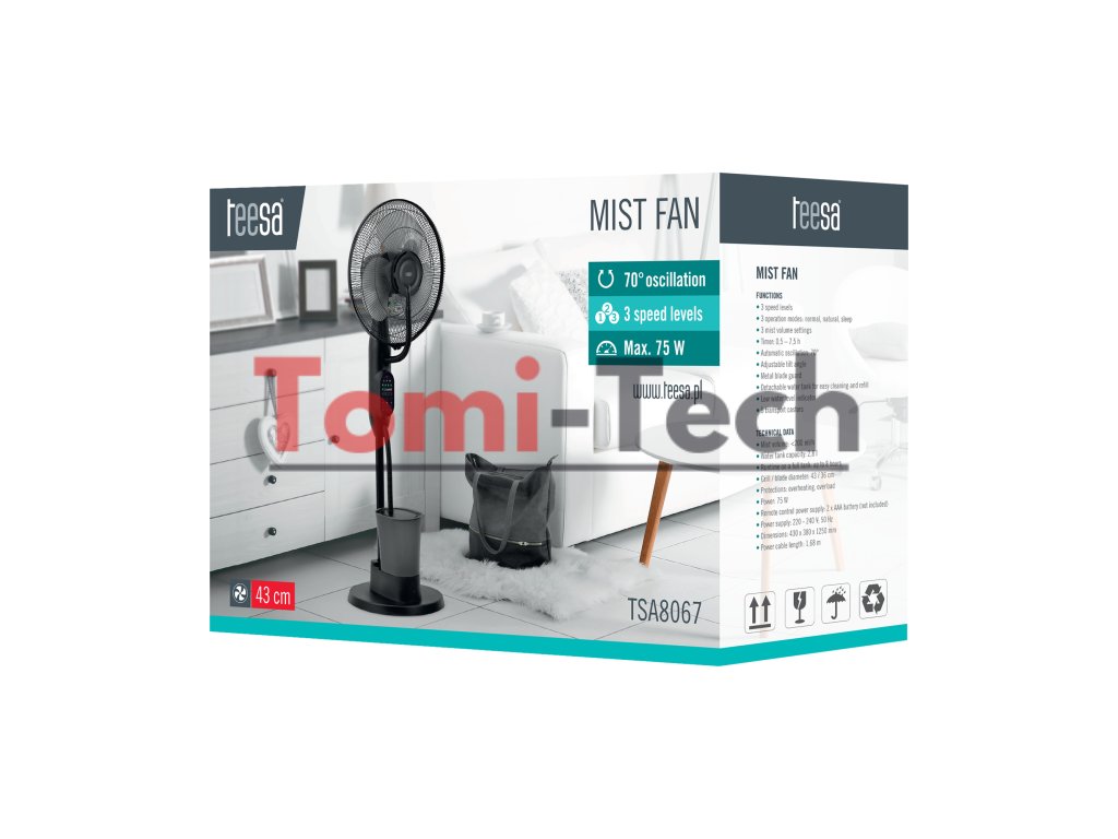 Nepríjemné teplo môže efektívne narušiť pohodlie vo vašej domácnosti a kancelárii. Stojanový ventilátor Teesa s funkciou hmly je perfektným riešením pre horúce dni. Kombináciou efektívnej cirkulácie vzduchu so zvlhčujúcou hmlou sa efektívne znižuje okolitá teplota a zlepšuje sa vaša pohoda.