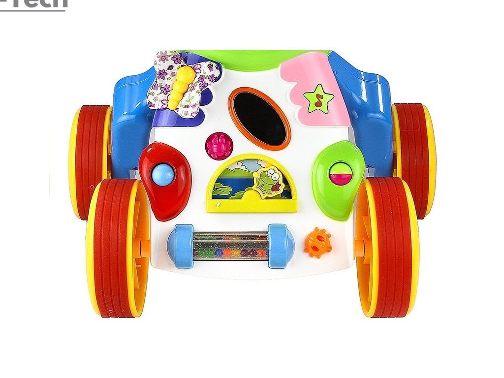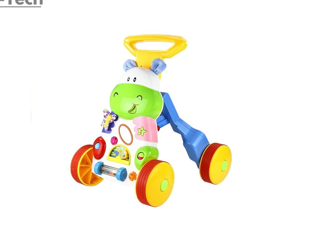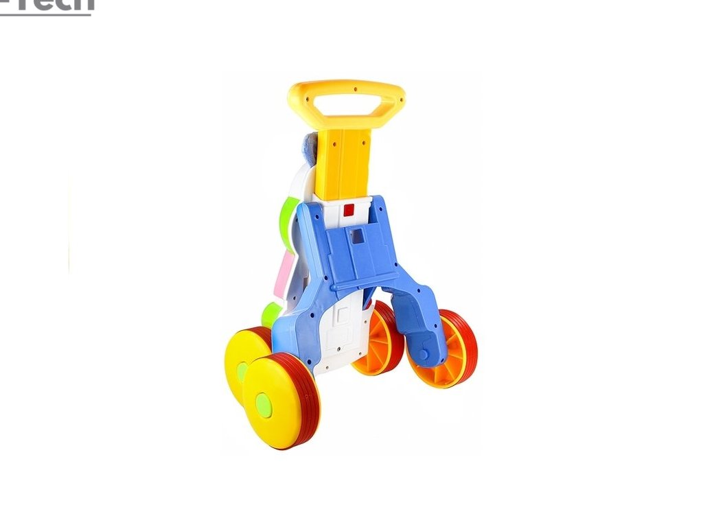 Multifunkčné chodítko má jednoduchý dizajn bezpečný pre deti. Jeho konštrukcia je bez ostrých hrán a jeho rozmery sú nastaviteľné – má 2-stupňové nastavenie rázvoru a 3-stupňové nastavenie výšky rukoväte. Žlté plastové kolieska sú pokryté červenými pogumovanými krytmi, takže chodítko je tiché. Viacfarebné chodítko bude mať určite významný vplyv na vývoj dieťaťa, najmä na jeho intelekt, ako aj na učenie sa rozpoznávania farieb a tvarov. Samostatná hra s použitím prvkov z interaktívneho panela pomôže dieťaťu zvýšiť svalovú silu v rukách a nohách, ako aj motorickú koordináciu.
