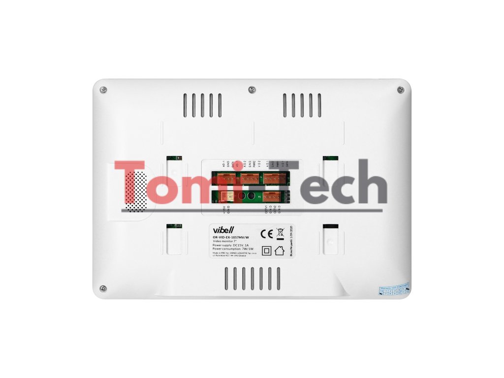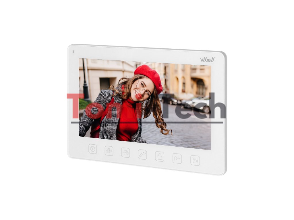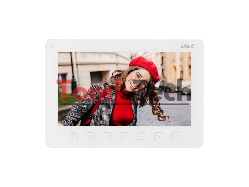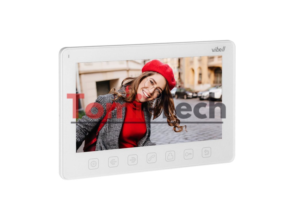 Tento 7-palcový farebný videomonitor s vysokým rozlíšením je kompatibilný so systémami VIBELL. Zariadenie nevyžaduje slúchadlo, pretože s osobou pri vchode môžete hovoriť prostredníctvom handsfree monitora. Videomonitor je možné rozšíriť o ľubovoľnú videokazetu VIBELL (napájajúcu elektrický zámok), ďalšie monitory VIBELL a CCTV kamery. Monitor tiež obsahuje ovládanie brány bez potreby ďalšieho príslušenstva. K dispozícii v bielej farbe.Dodatočné parametre