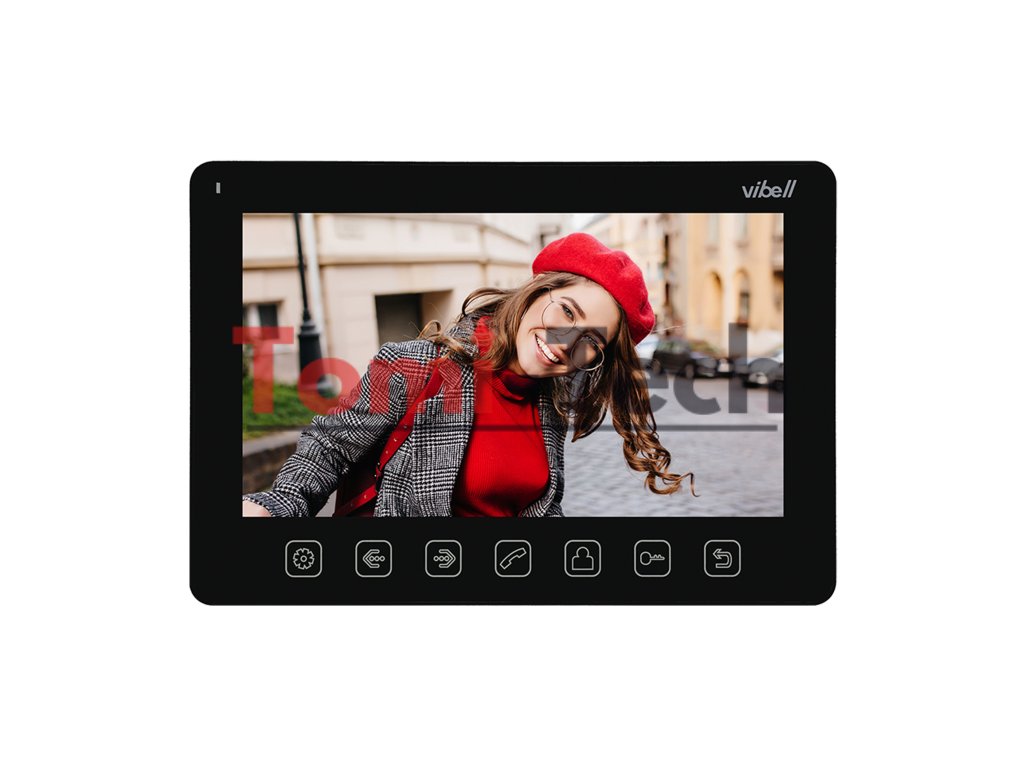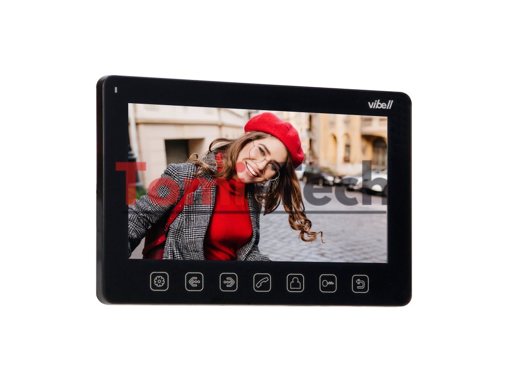 Tento 7-palcový farebný videomonitor s vysokým rozlíšením je kompatibilný so systémami VIBELL. Zariadenie nevyžaduje slúchadlo, pretože s osobou pri vchode môžete hovoriť prostredníctvom handsfree monitora. Videomonitor je možné rozšíriť o ľubovoľnú videokazetu VIBELL (napájajúcu elektrický zámok), ďalšie monitory VIBELL a CCTV kamery. Monitor tiež obsahuje ovládanie brány bez potreby ďalšieho príslušenstva. K dispozícii v čiernej farbe.Dodatočné parametre