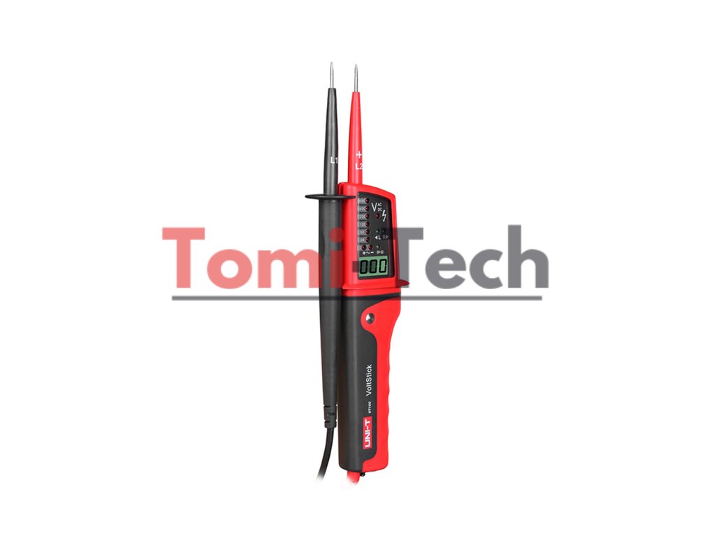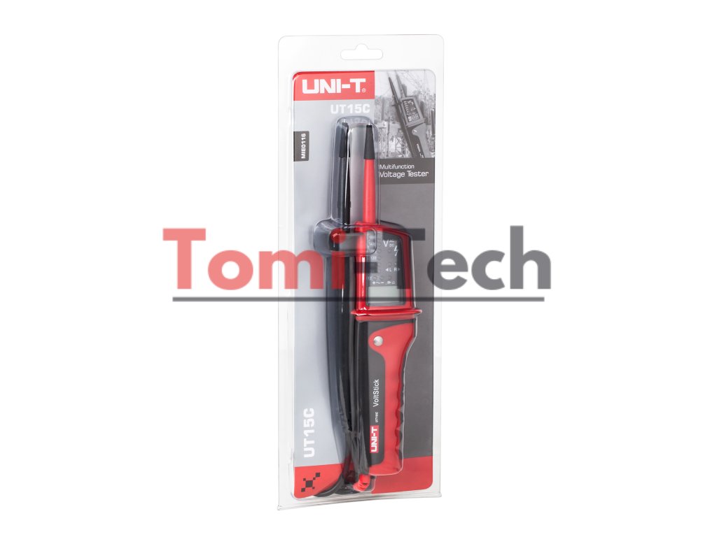 UT15C umožňuje merať striedavé/jednosmerné napätie v širokom rozsahu od 12 V do 690 V, s presnosťou Ω (3%+5) pre napätia medzi 24 V a 690 V. Zariadenie je vybavené LED indikátorom, ktorý jasne zobrazuje aktuálne napätie. Tester ponúka aj funkciu testu fázovej postupnosti pre napätia od 100 V do 690 V a detekciu jednofázového napätia s frekvenciou od 50 Hz do 400 Hz, čo je nevyhnutné pri práci s trojfázovými inštaláciami.