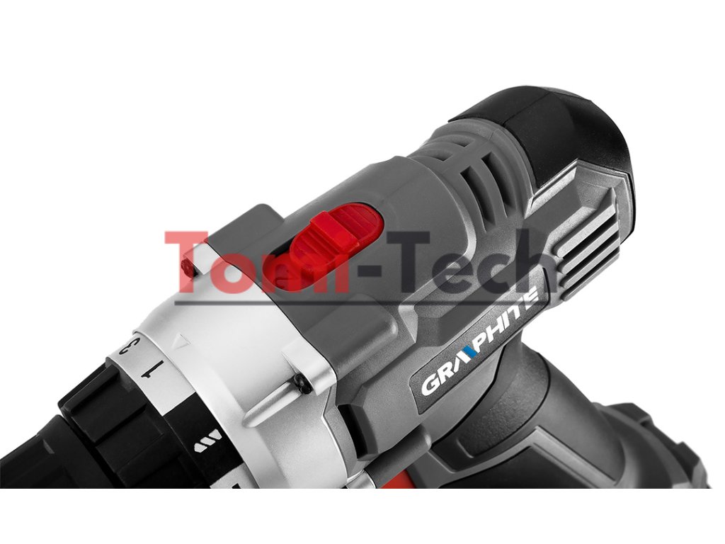 Sada: vŕtačka-skrutkovač (58G000) s jednou 2,0Ah batériou (58G001) a nabíjačkou (58G002) v kartónovej krabici. Technické údaje vŕtačky-skrutkovača: 18 V, Li-Ion, otáčky I: 0 – 350 min-1 II: 0 – 1 250 min-1, pravá/ľavá, rýchloupínacie skľučovadlo 0,8 – 10 mm, polohy spojkového krúžku 1 – 19 (a možnosť vŕtania), krútiaci moment (mäkký/tvrdý): 28/44 Nm, brzda vretena, (D x V) 210 x 210 mm, hmotnosť 1,1 kg.Dodatočné parametre