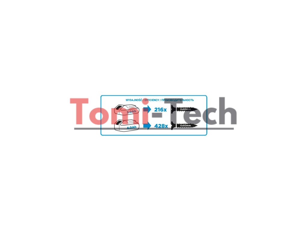 18V Li-Ion akumulátorová vŕtačka/skrutkovač, rýchlosť I: 0-350 min-1 II: 0-1250 min-1, pravá/ľavá, rýchloupínacie skľučovadlo 0,8-10 mm, polohy spojkového krúžku 1-19 (a možnosť vŕtania), krútiaci moment (mäkký/tvrdý): 28/44 Nm, brzda vretena, (DxV) 210 x 210 mm, hmotnosť 1,1 kg, kompatibilná s batériami Energy+Dodatočné parametre