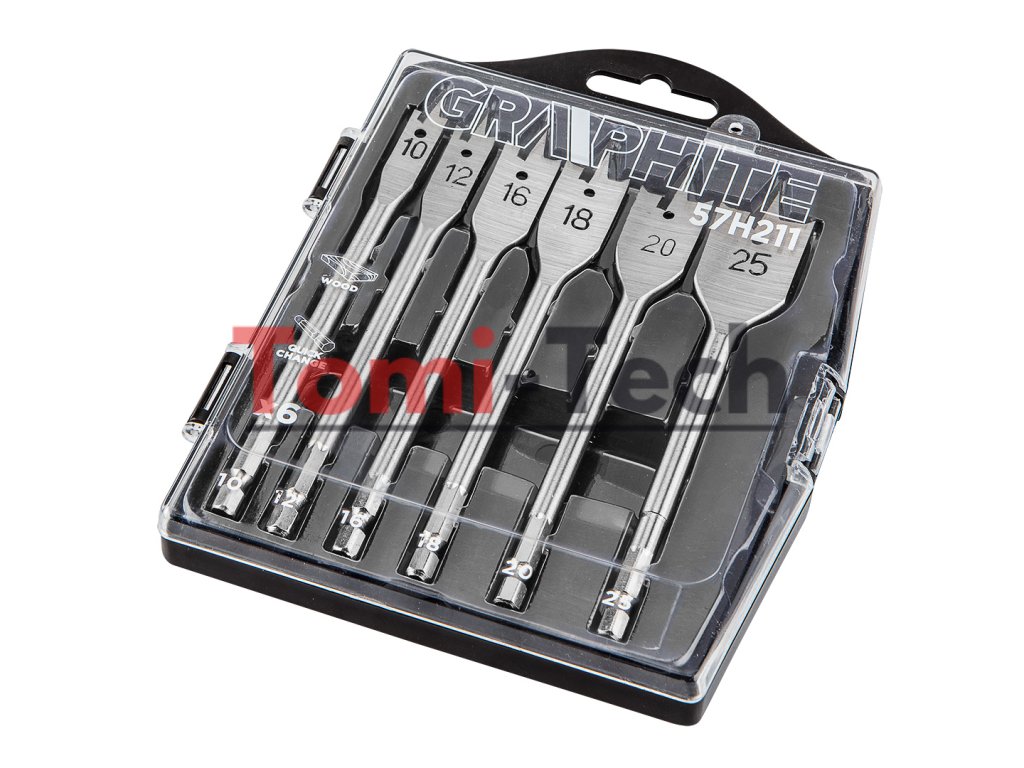 Ploché vrtáky do dreva, 10, 12, 16, 18, 20, 25 mm, sada 6 kusov.