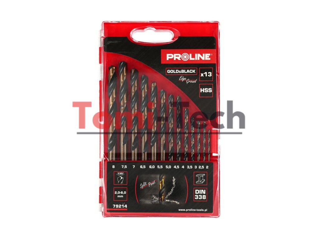 Vrtáky do kovu HSS DIN338, krátke, brúsne, 13 ks (2-8 mm), Proline