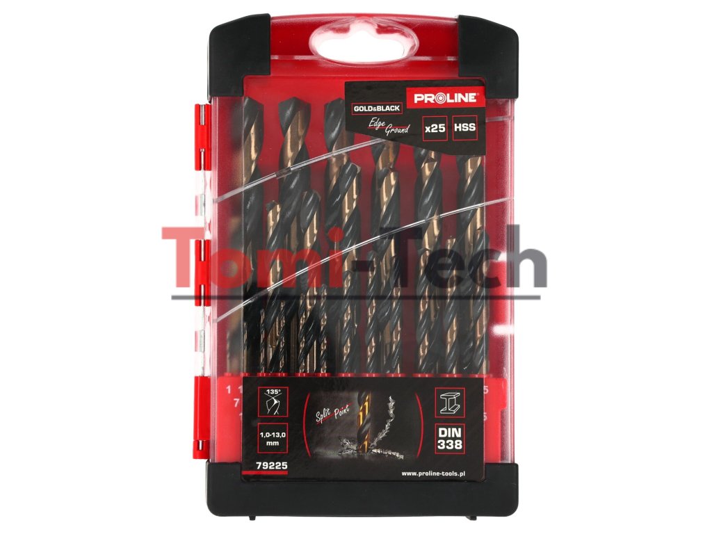 Vrtáky do kovu HSS DIN338 krátke brúsne 25 ks (1-13 mm) Proline